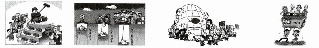 5. 下列四幅漫画中,能体现人口数量过多带来资源危机的有( )