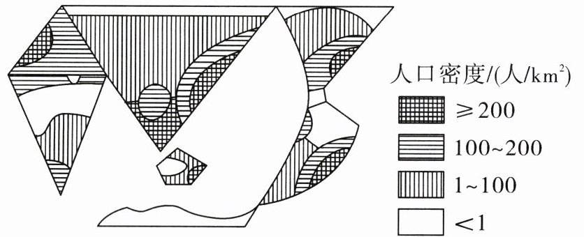 某中学生得知,目前全世界人口总数已超过80亿。为探究世界人口分布特点,她绘制了一幅世界人口分布简图(下图)。读图回答3~5题。