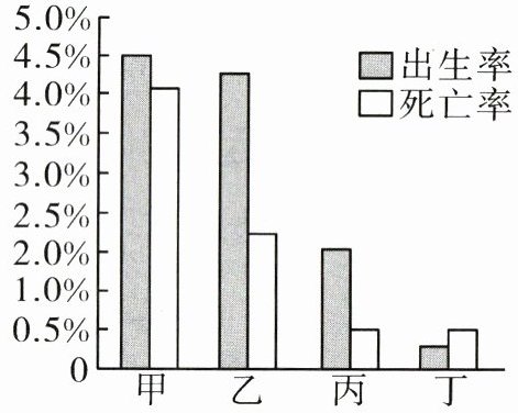1. 甲、乙、丙、丁四个地区,人口增长速度最快的是( )