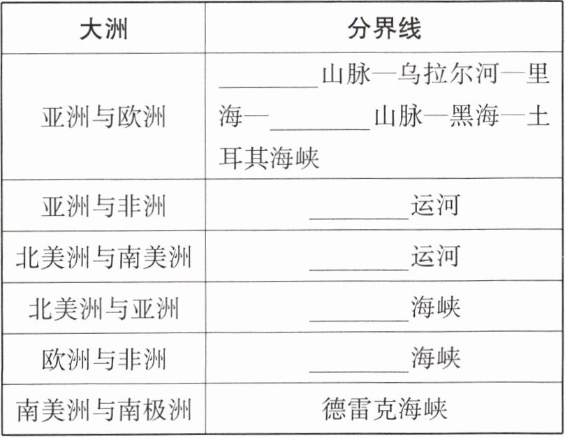 3 填写大洲之间的分界线