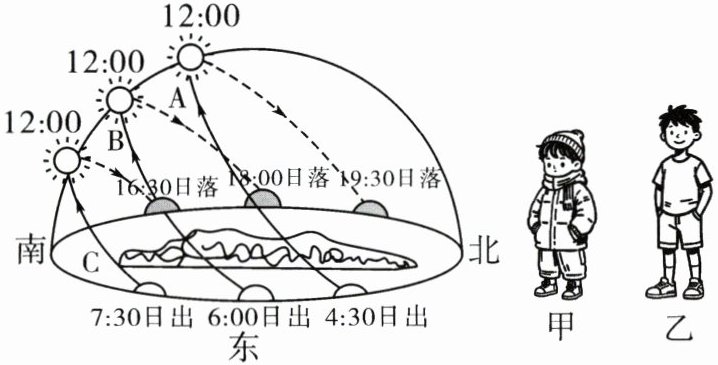 D. 路径B日出时间是7:30,当日昼夜长短情况是昼短夜长