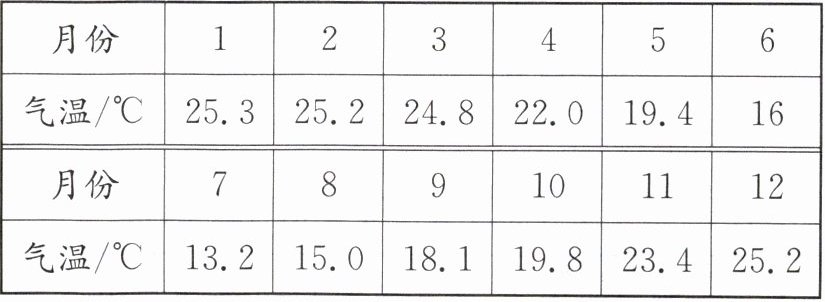 |气温/$^\circC$|25.3|25.2|24.8|22.0|19.4|16|