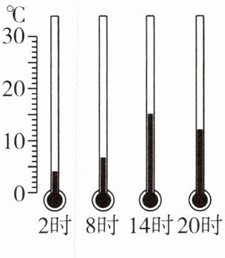 (1)①按照测定气温的要求,将 (填测量气温的仪器)放到百叶箱内(该仪器离地面 1.5 m)。②气温观测时间:北京时间 2 时、8 时、14 时、20 时。③记录观测结果(下图为某日的气温观测记录)。当天最高气温是 。