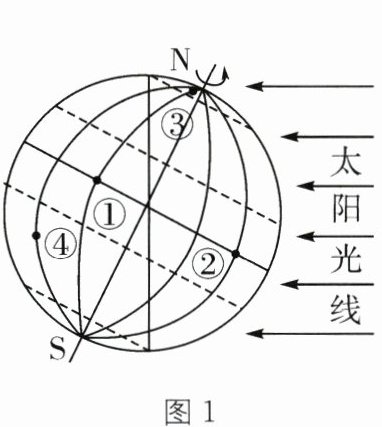 (1)日出而作,日落而息。地球自转引起______现象,图1中①④两点中,先看到日出的是点______;②③两点中,有阳光直射现象的是点______。