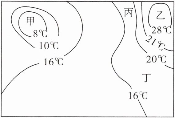 B. 乙地是高温中心