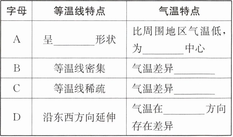 |字母|等温线特点|气温特点|