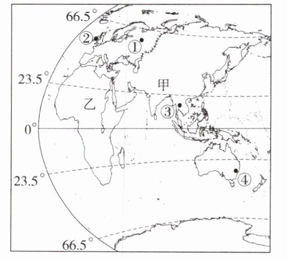 (4)乙大洲被称为“热带大陆”,说明从图中可以获取的依据。