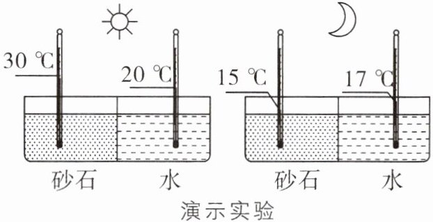 7.C 8.B [解析]第 7 题,读图可知,图中砂石代表陆地,水代表海洋,形象地演示了海陆位置对气温的影响。海洋和陆地比热容不同,陆地比热容小,较海洋升温快,降温也快,使得陆地气温日较差大,海洋气温日较差小。此演示实验中气温的变化与纬度位置、地形因素和人类活动无关。第 8 题,读图可知,图中白天砂石气温高于水的气温,晚上砂石气温低于水的气温,因此同一时刻陆地释放的热量不一定小于海洋;陆地气温日较差为15℃,海洋气温日较差为3℃,陆地气温日较差大于海洋;同一时刻陆地吸收的热量与海洋不相同;海洋的气温晚上高于陆地,白天低于陆地。
