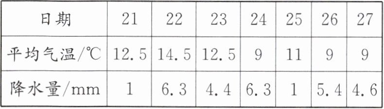 |平均气温/℃|12.5|14.5|12.5|9|11|9|9|