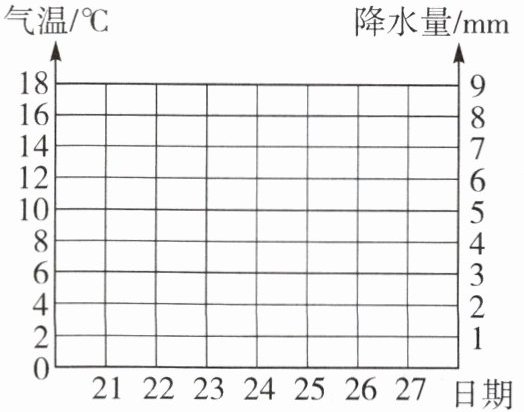 (3)地理兴趣小组绘图的同学们在气象台处收集到 2024 年 3 月 21—27 日本市日均温和降水量数据。请你根据表中数据绘制气温曲线与降水量柱状图。