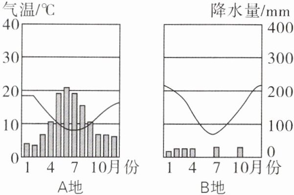 读气温曲线图,分析该地的______ 气温/℃ 降水量/mm 读降水量柱状图,分析该地的______