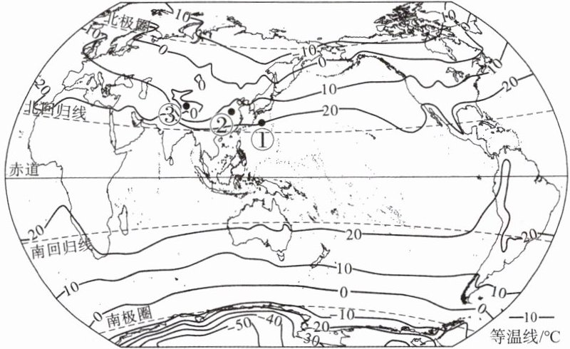 5 下列关于①②③三地年平均气温的说法,正确的是( )