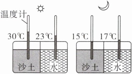 中考新考法 地理实验 (2025·北京西城区期末)某校地理学习小组为探究影响气候的因素设计了模拟实验。他们选择在某日的白天和夜晚,对容器中沙土和水的温度变化分别进行观测。实验中水和沙土的质量、初始温度等条件相同,测量结果如右栏图所示。他们又经过多次实验,所得结论相似。据此回答 1~2 题。
