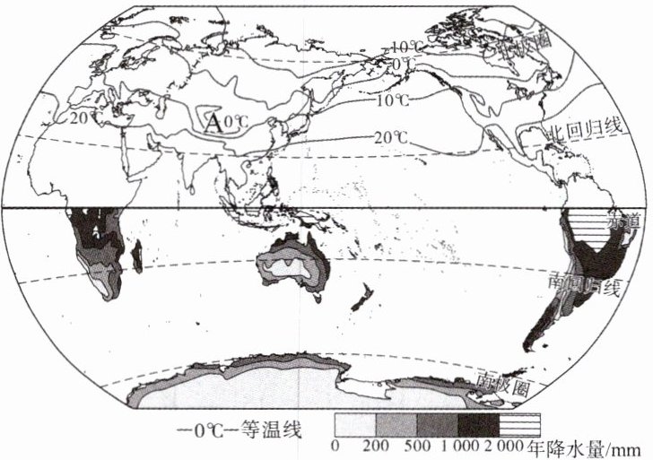 (2024·山东济南槐荫区二模)运用地图认识地理规律是初中地理学习的目标之一。下图为北半球年平均气温分布和南半球年降水量分布图。据此回答8~9题。
