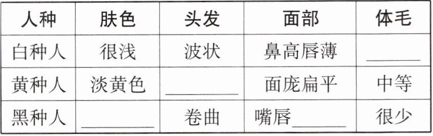 |黄种人|淡黄色|______|面庞扁平|中等|