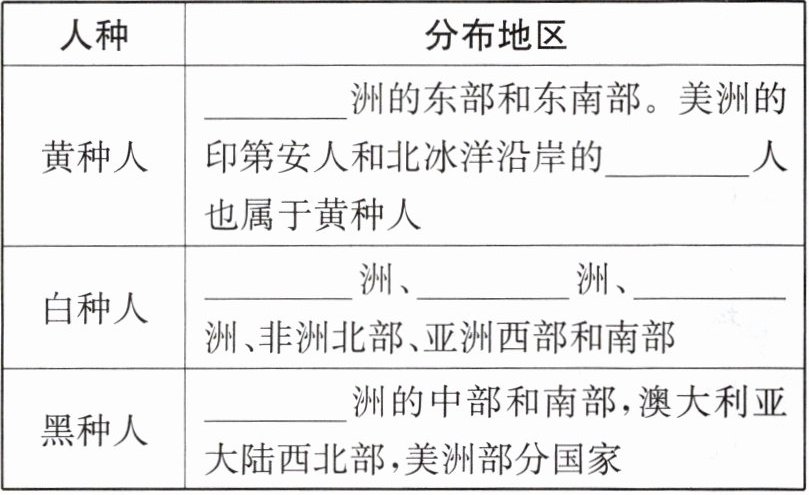 |黑种人|______洲的中部和南部,澳大利亚大陆西北部,美洲部分国家|