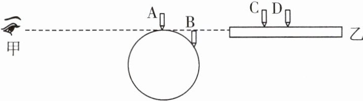 (1)甲同学不动,眼睛保持与木板等高,乙同学将竖直铅笔由D向C缓慢移动。甲同学观察到:随着铅笔位置的变化,其长度______(改变/不变)。