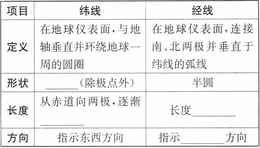 |定义|在地球仪表面,与地轴垂直并环绕地球一周的圆圈|在地球仪表面,连接南、北两极并垂直于纬线的弧线|