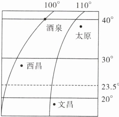 新情境 神舟二十号升空 北京时间 2025 年 4 月 24 日 17 时 17 分,搭载神舟二十号载人飞船的长征二号 F 遥二十运载火箭在酒泉卫星发射中心点火发射,发射取得圆满成功。读我国四大卫星发射中心位置图,回答 6~7 题。