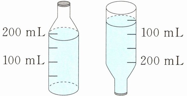 3. 一个饮料瓶中装有部分水,已知正放和倒放时的刻度如下图所示,则饮料瓶的容量是(