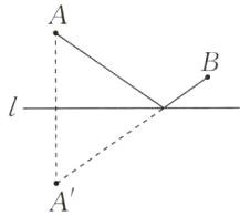 1. 李大爷从家(点 A 处)到河边(直线 l 处)取水,然后把水挑到菜地(点 B 处),如下图。请你帮李大爷找一条最短的线路。