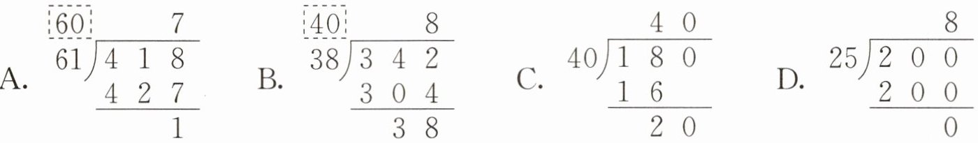 4. 在验算 $248 ÷ 40 = 6 … … 8$ 时,下面(