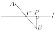 5. 如下图,直线l是一条公路,A、B两点表示两个村庄。张叔叔准备在公路边开一家超市,为了使两个村庄的人到超市的总路程最近,他计划从点B向直线l作垂线与直线l交于点P,在点P处建超市(如图)。你是否同意他的做法?若同意,写出你的想法;若不同意,画出你认为超市的最佳位置并说明理由。