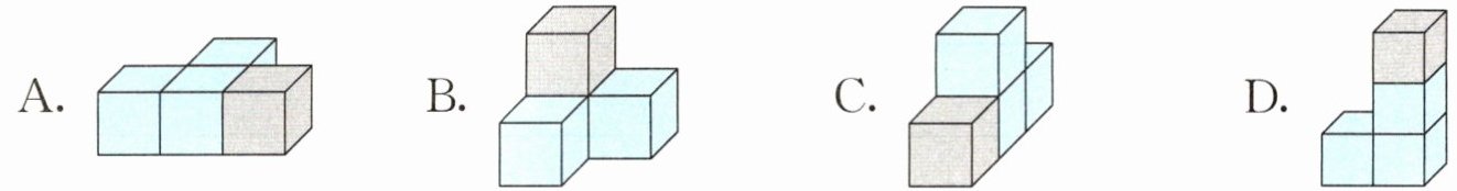 2. 添上灰色正方体后,从前面看到的形状不变的是(