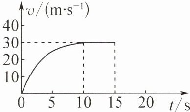 7. 爸爸开着汽车带小明去旅行,若汽车做直线运动,牵引力的功率恒为$9×10^{4}W$,运动过程中受到的阻力保持不变,运动的速度v与时间t的关系如图所示,在0~10s内,牵引力做功