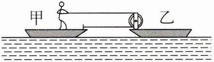 8. (2024·镇江丹徒模拟)如图所示,湖水中有两艘小船,绳子的一端拴在甲船上,乙船上固定着滑轮,绳子绕过滑轮,站在甲船上的人用 100 N 的力拉绳子的自由端。如果在 20 s 内甲船向右匀速移动了 10 m,同时乙船向左匀速移动了 4 m,则下列说法正确的是 (