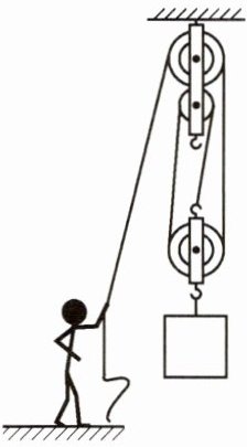 8. 在九年级物理拓展课上,李博同学模拟某建筑工地上塔吊的工作情景,设计了如图所示的滑轮组来提升装修材料,若他用 250 N 的拉力在 20 s 内将 450 N 的材料提升了 10 m。问:(不计绳重和摩擦,g 取 10 N/kg)