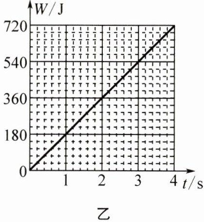 (1)由图乙知,$P=\frac{W_{总}}{t}=\frac{720\ \text{J}}{4\ \text{s}}=180\ \text{W}$。