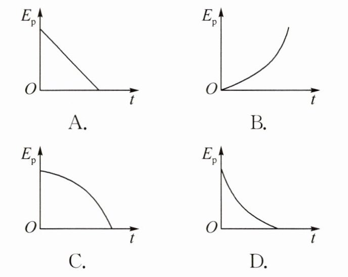 4. 一个小石块从空中的某一高度,由静止开始竖直下落,若不计空气阻力,从小石块开始下落,到刚落到地面的过程中,小石块的重力势能 $ E_{p} $ 随时间变化的图像可能是(