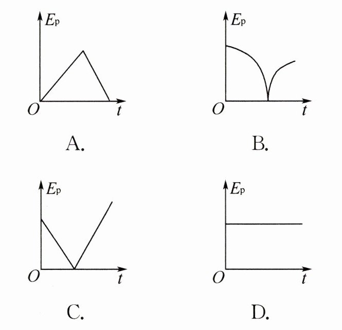 B 提示:小球从左侧斜坡滚下的过程中,单位时间内降低的高度越来越大,重力势能的减小量越来越大;小球到达最低点时的重力势能为0;小球沿着右侧斜坡向上滚的过程中,单位时间内上升的高度越来越小,重力势能的增加量越来越小。