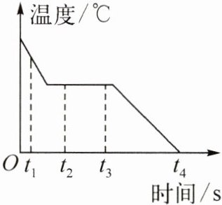 8. 如图所示是某物质由液态变为固态过程中温度随时间变化的图像。由图可知:$t_{4}$时刻物体内能