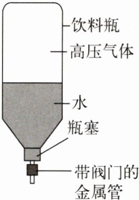 8. (2024·盐城大丰期中)小明用饮料瓶制作水火箭,先在瓶里装适量水,然后将带有阀门的金属管插入瓶塞,旋紧瓶塞后用打气筒往瓶里打足气(如图),打开阀门后,水从尾部的金属管向下喷出,水火箭向上飞向空中,下列分析正确的是(