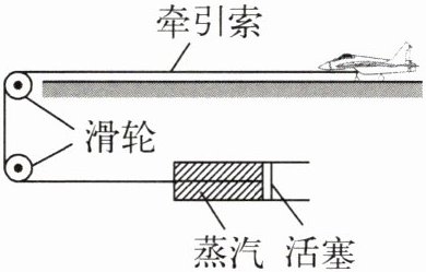5. (2024·南通如皋期中)“辽宁舰”服役,圆了中国航母梦。如图为航母上蒸汽弹射装置的简化示意图,能带动舰载机在两秒钟内达到起飞速度。汽缸内蒸汽体积膨胀,对外做功,同时推动活塞,使舰载机获得巨大的牵引力,此过程中蒸汽的