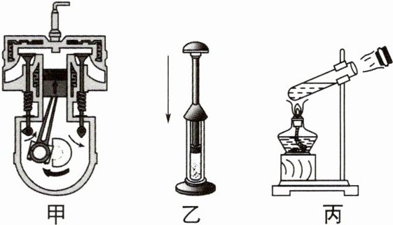 2. (2024·南京秦淮月考)如图甲所示是四冲程汽油机某冲程的示意图;图乙为空气压缩引火仪;图丙中对试管中水加热一段时间后瓶塞“飞出”。关于这三幅图,下列说法正确的是(
