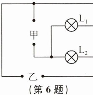 6. 如图所示,要把电池和开关分别填入电路的甲处和乙处。要求:闭合开关前只有一盏灯亮,闭合开关后,两灯都亮。则甲处是