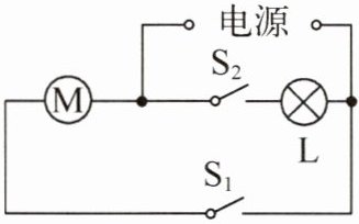 D.同时闭合开关$S_{1}$、$S_{2}$,灯泡L和电动机M并联