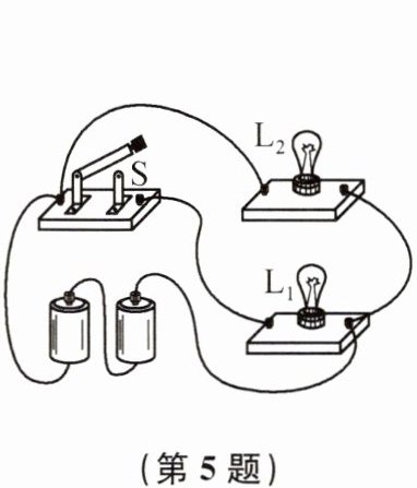 5. 如图所示,闭合开关S,灯泡$L_{1}与L_{2}$的连接方式是