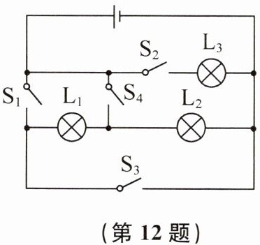12. (2024·盐城东台期中)如图所示的电路中,当开关$S_{1}$、$S_{2}$断开,$S_{3}$、$S_{4}$闭合时,灯