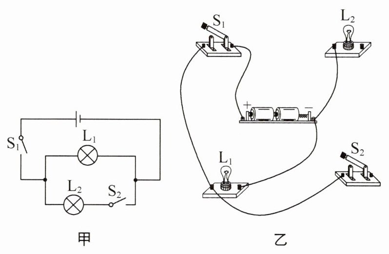 (3)闭合开关$S_{1}$,断开$S_{2}$,一条支路的灯因断路停止工作,另一支路______。