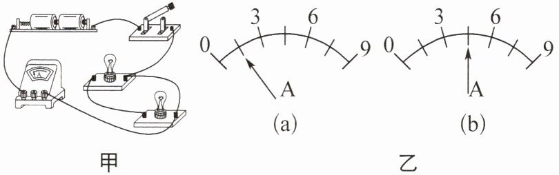 (3)某电流表有两个量程,只知道大量程是0~9 A,小量程刻度值未标明,为了探究电流表的小量程是多少,先用大量程测一较小的电流,其示数如图乙(a)所示,再改用小量程测同一电流,指针指在图乙(b)的位置。则该电流表的小量程是______。