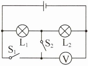 (1)根据电路图连接好电路,闭合开关S后,小明发现两只灯泡都不亮,且电压表的示数为0,若只有灯$L_1$或$L_2$中的一处发生故障,则故障是______。