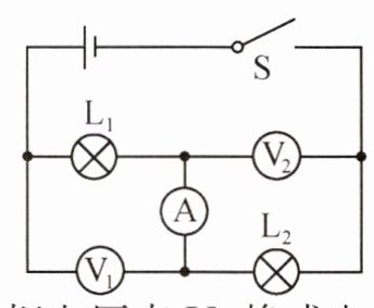 9. D 提示:两灯泡串联时,电压表V₁测灯L₁两端的电压,电压表V₂测灯L₂两端的电压,电源电压U=U₁+U₂=4 V+6 V=10 V;若把电压表V₁换成电流表A₁,电压表V₂换成电流表A₂,电流表A换成电压表V,则两灯泡并联,电流表A₁测灯L₂支路的电流,电流表A₂测灯L₁支路的电流,电压表V测电源电压,则此时电压表V的示数为10 V。