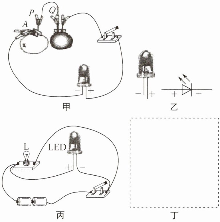 (1)水果在电路中起提供电能的作用,相当于电源。图甲中电流必须从二极管的正极流入,二极管才能发光,说明水果电池组最左侧的接线柱是负极,电流的方向是从P到Q。