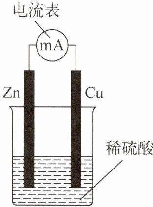 6. 如图是一个电池的示意图,该装置可产生气体和电流。老师告诉同学们只要用两种不同的导体做电极,用水果代替实验中的稀硫酸也可以组成一个电池,产生电流的原理是一样的。同学们很感兴趣,在课外实验中进行了水果电池的制作,记录了使用不同电极时单个西红柿水果电池的电流和电压,实验数据如下表所示。注:除电极材料不一样外,其他实验条件均相同。请回答以下问题: