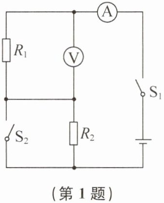 1. (2024·徐州睢宁期末)如图所示,电源电压恒定。闭合开关$S_{1}$、$S_{2}$,电压表的示数为 9 V,电流表的示数为 1.5 A;断开开关$S_{2}$,电压表的示数为 6 V。$R_{1}和R_{2}$的阻值分别是(