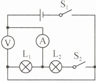 变大 不变 不变 提示:开关$S_{1}$闭合、$S_{2}$断开时,仅灯$L_{1}$工作,电压表测电源电压,电流表测通过灯$L_{1}$的电流;开关$S_{1}$、$S_{2}$均闭合时,两灯并联,电流表测干路电流,电压表测电源的电压,故电压表的示数不变,电流表的示数变大,灯$L_{1}$两端电压和流过它的电流不变,故灯$L_{1}$的亮度不变。